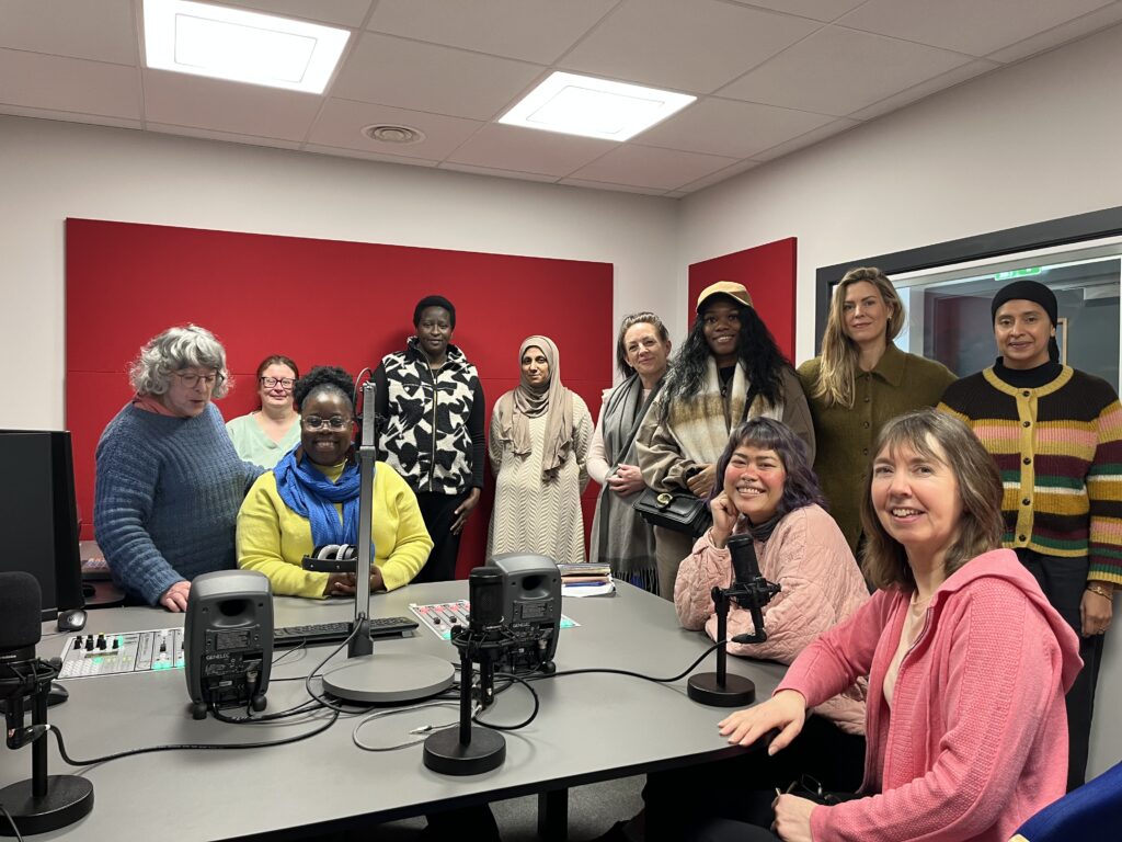 A group of women trainees have been learning radio skills at BCB, practising with each other and gaining confidence to take part in and make radio programmes – and having fun too! If you want to enquire about joining this course please ring Mary or Carole on 01274 771677 or send an email to hello@bcbradio.co.uk with Step up to the Mic as the subject.
